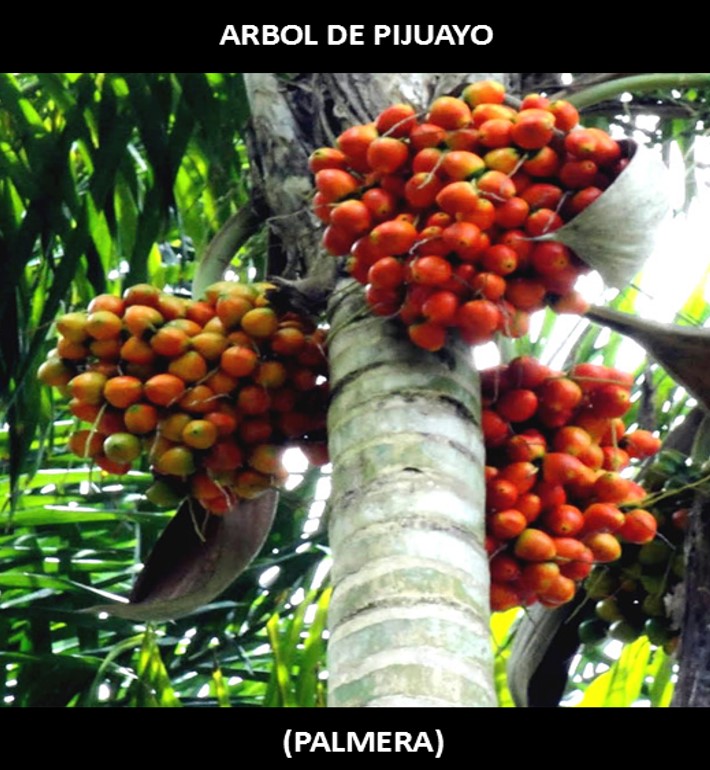 Pijuayo es una palma que puede medir más de 20 metros, sus hojas miden aproximadamente 3 metros de largo. |