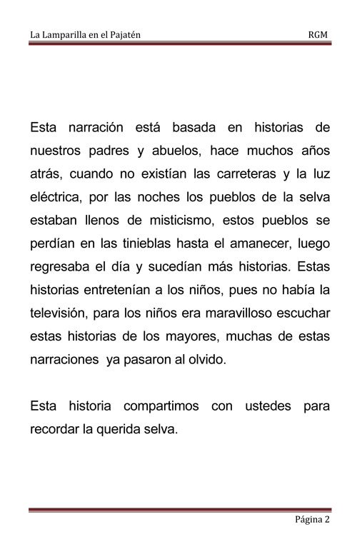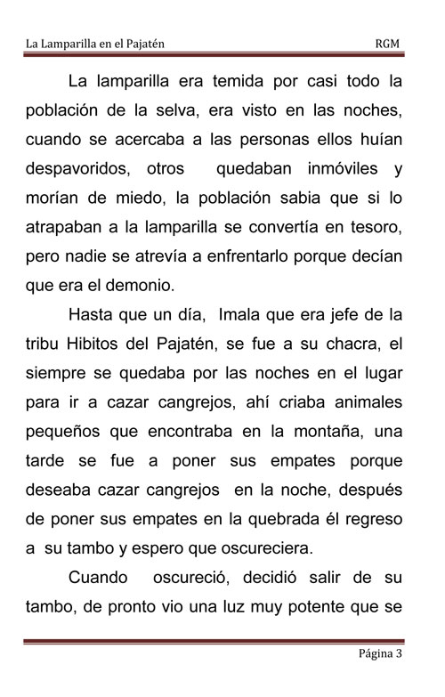 Una narración sobre el mito o leyenda de la Lamparilla en la selva.
